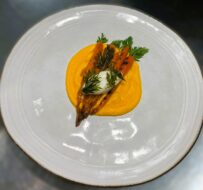 Informação Entrada: Cenouras glaceadas com mel e Queijo de cabra cremoso Nutriente Por 1 dose/pax -%DR Energia 490 kcal - 24,50% Gordura 29 g - 41% – saturada 18 g - 90% Hidratos de carbono 46 g - 18% – […]