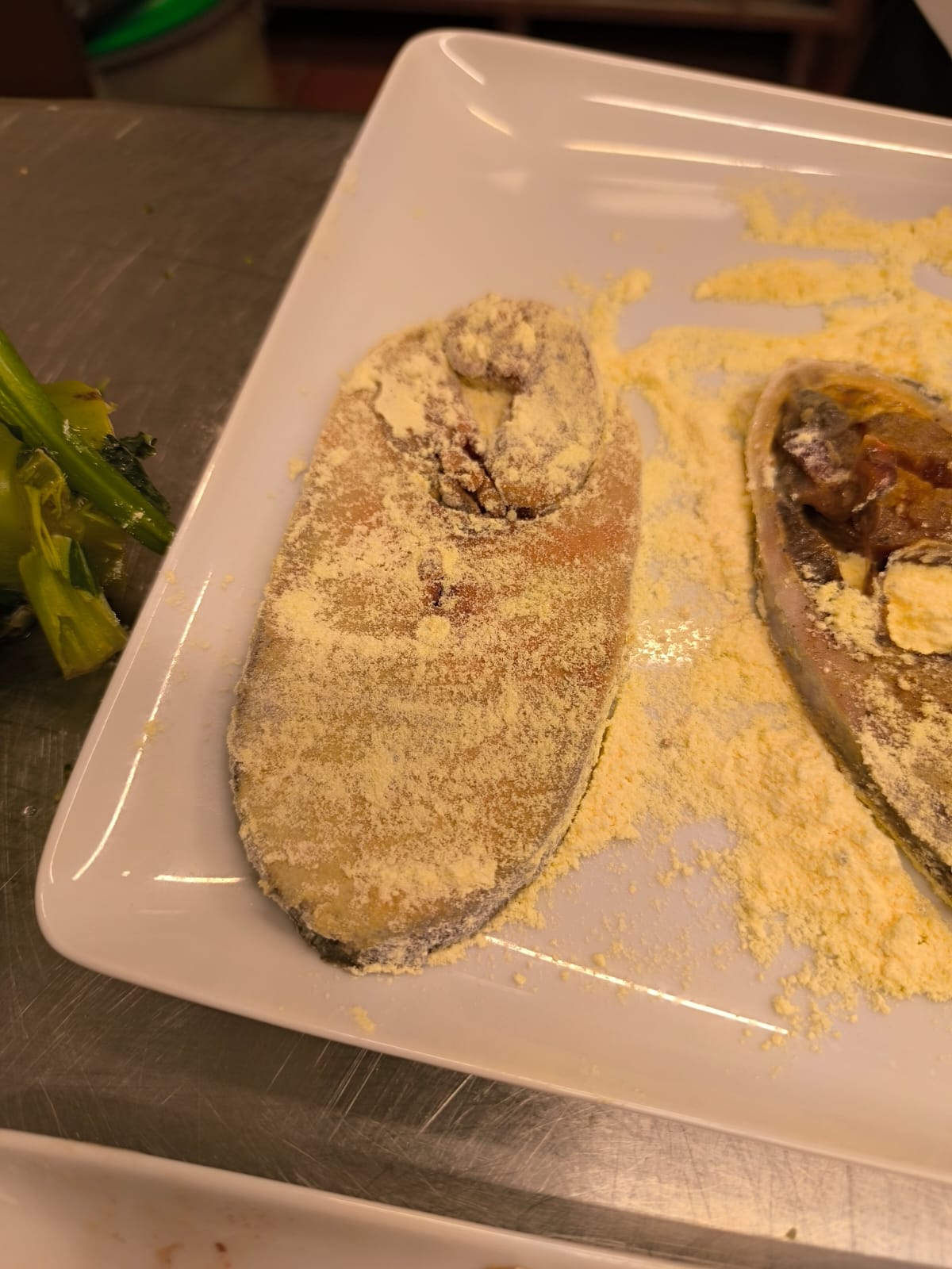No prato principal, “Sável frito com migas de legumes e creme de beterraba”, a principal alteração incide sobre a componente das migas. A broa de milho deverá ser substituída por broa ou pão de milho certificado sem glúten, ou alternativamente por uma preparação de migas à base de milho, arroz ou leguminosas, garantindo textura e ligação semelhantes. A farinha de milho utilizada na fritura do sável deverá ser certificada sem glúten. Deve igualmente assegurar-se que não são utilizados lacticínios em nenhuma das preparações, o que já se verifica na formulação base do prato.