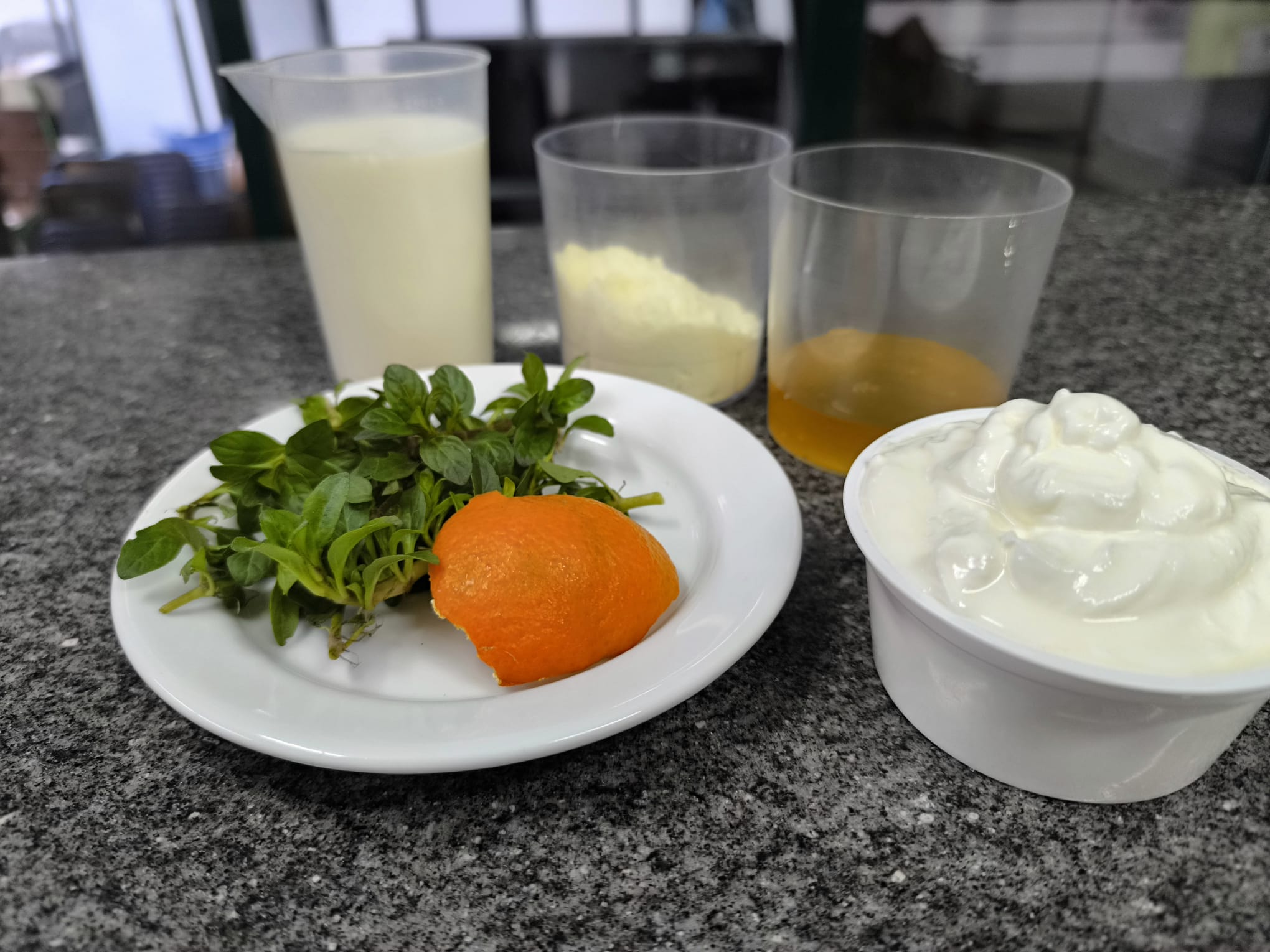 Na sobremesa, “Gelado de poejo e tangerina em tigelada de Abrantes com telha de amêndoa”, as adaptações são mais relevantes. A tigelada tradicional deverá ser reformulada com substituição do leite, iogurte e leite em pó por bebidas vegetais (por exemplo, bebida de amêndoa ou aveia sem glúten) e por alternativas fermentadas vegetais, mantendo textura e perfil aromático. A manteiga utilizada na telha de amêndoa deve ser substituída por gordura vegetal ou azeite suave. A farinha de trigo deverá ser substituída por farinha sem glúten (por exemplo, farinha de arroz ou mistura certificada). O gelado deve ser elaborado sem lacticínios, recorrendo a base vegetal e estabilizantes naturais, como o agar-agar, já presente na receita.