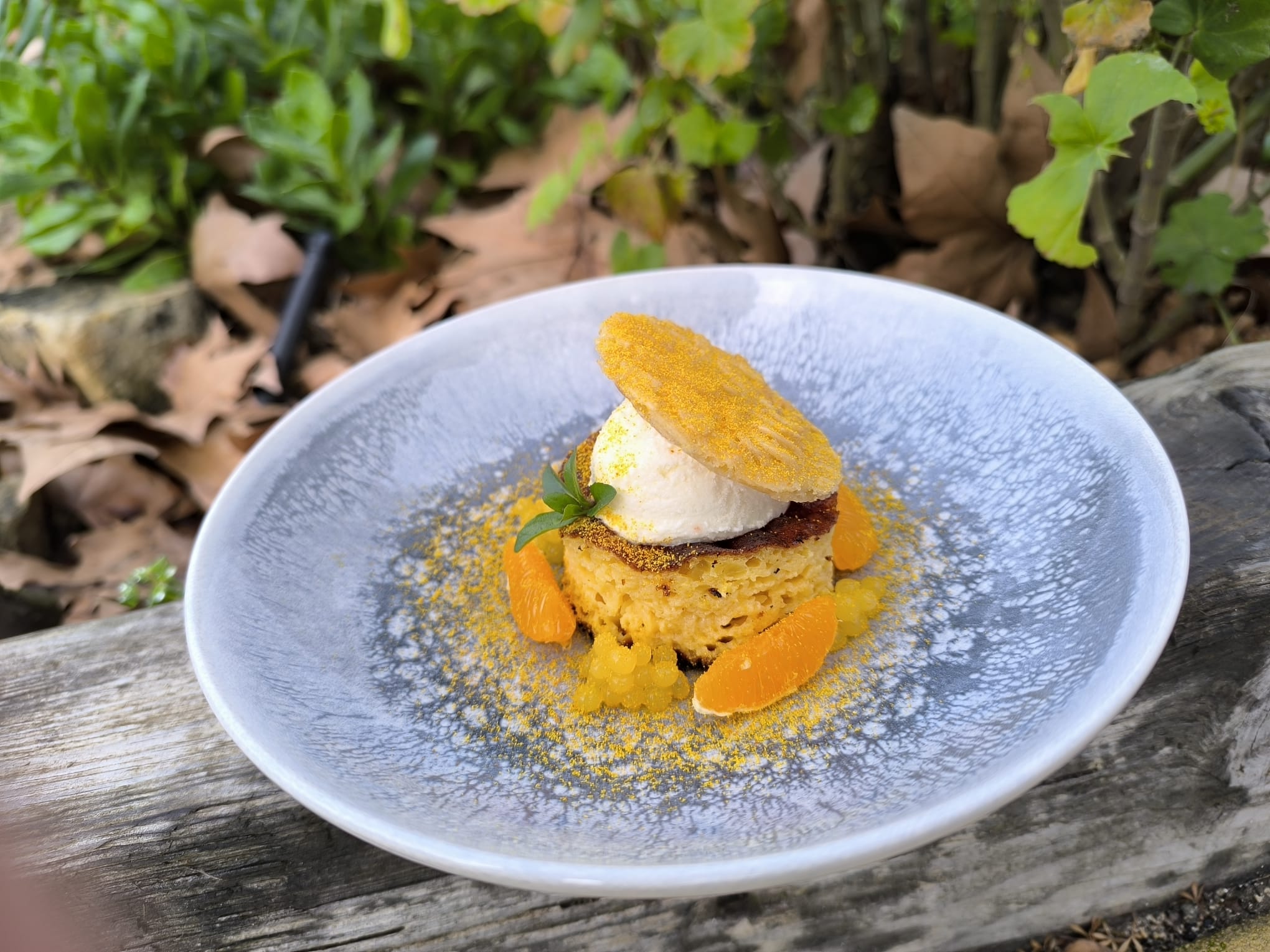 Sobremesa - “Gelado de poejo e tangerina em tigelada de Abrantes com telha de amêndoa”