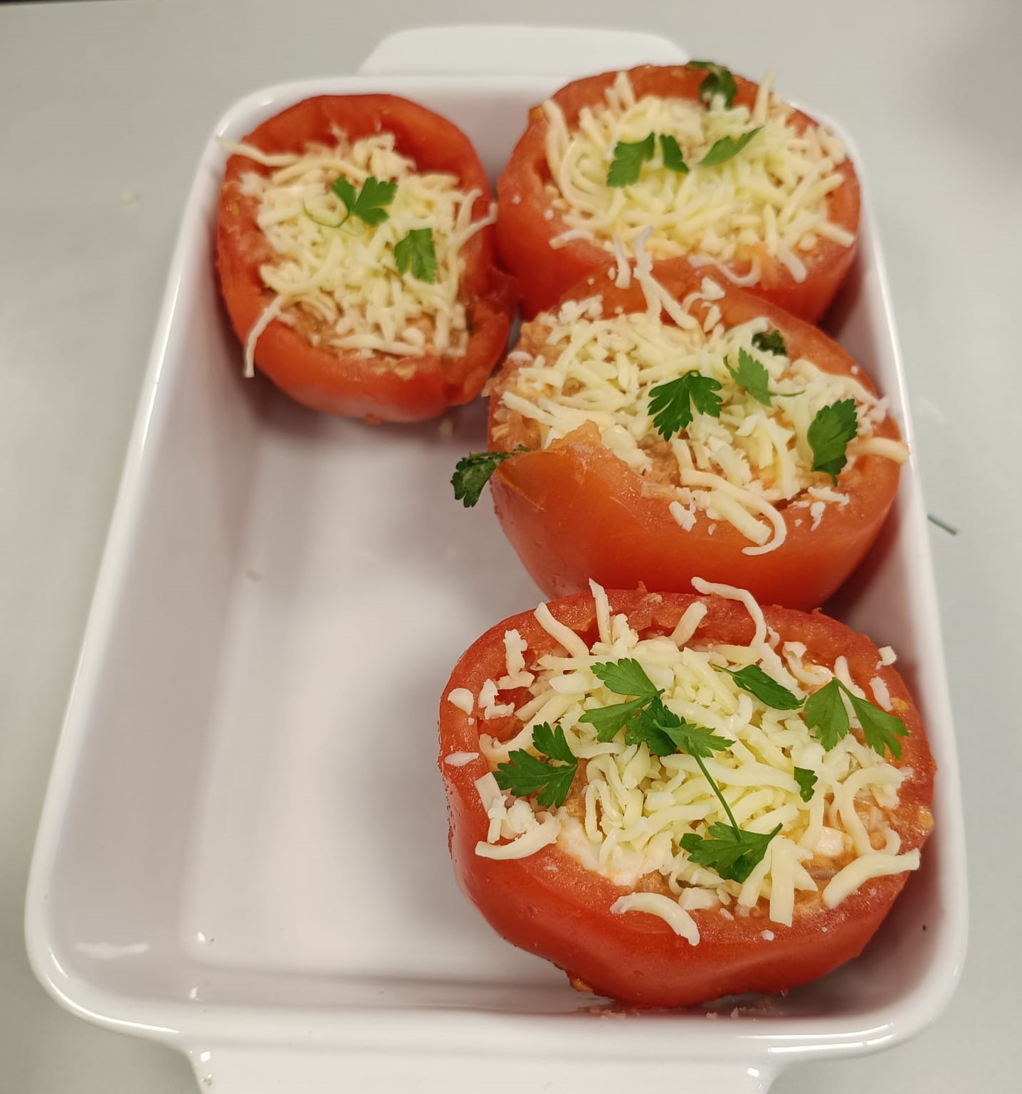 Prato Principal + Acompanhamento (Tomate Recheado com Atum e Ovo + Batata Cozida)