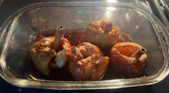 Maçã Assada com canela e mel: €1,20 para 2 porções; €0,60 por porção