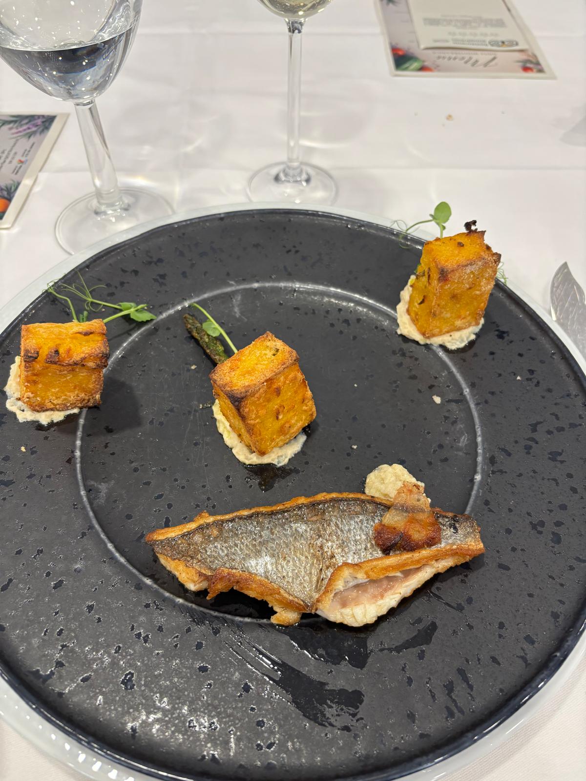 O peixe, representado pela dourada, assume o papel de proteína principal, em consonância com as recomendações mediterrânicas que privilegiam o consumo de pescado em detrimento das carnes vermelhas. A utilização de queijo(parmesão) e de produtos cárneos (presunto e toucinho) é realizada de forma pontual e moderada, funcionando como elemento de enriquecimento aromático e de profundidade gustativa, sem comprometer o equilíbrio global do prato.