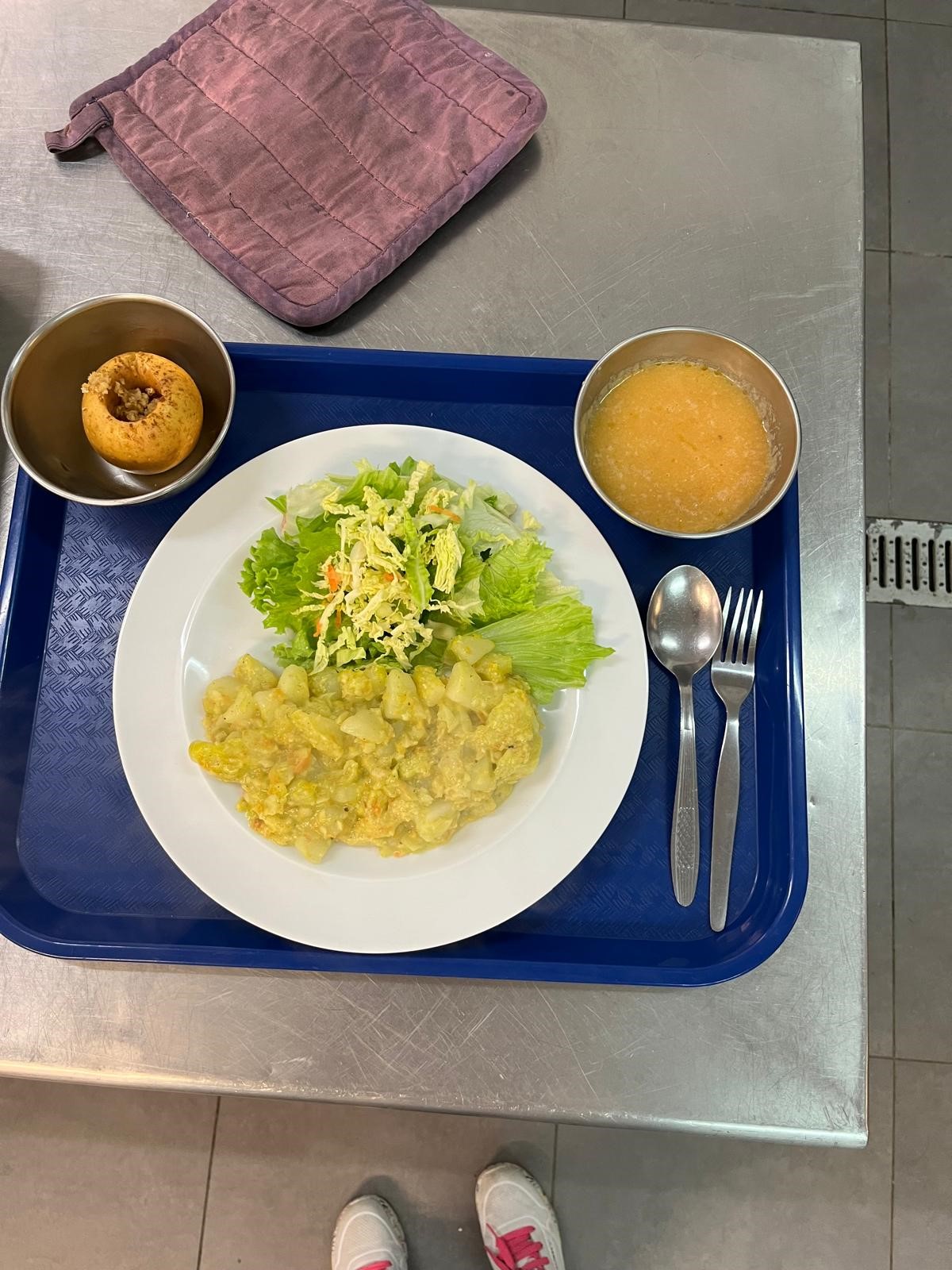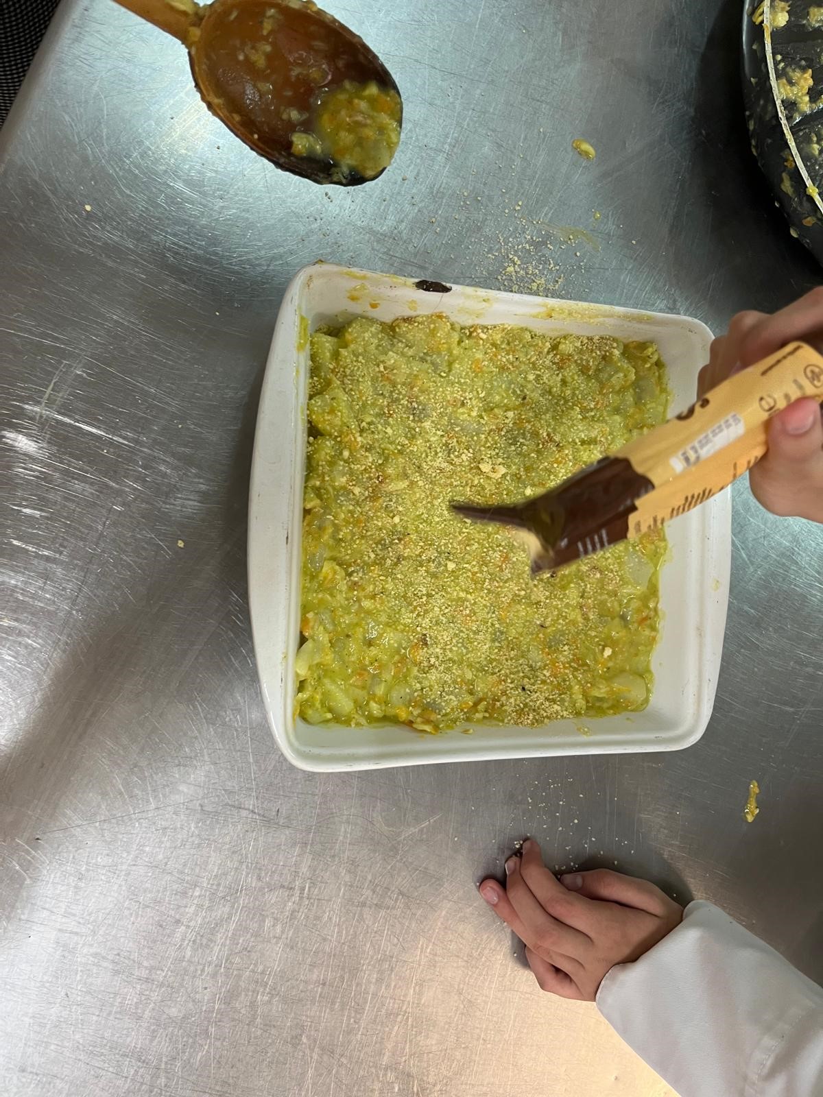 Prato Principal: Pescada Cremosa com Molho de Espinafres e Salada de Alface e Couve-lombarda;