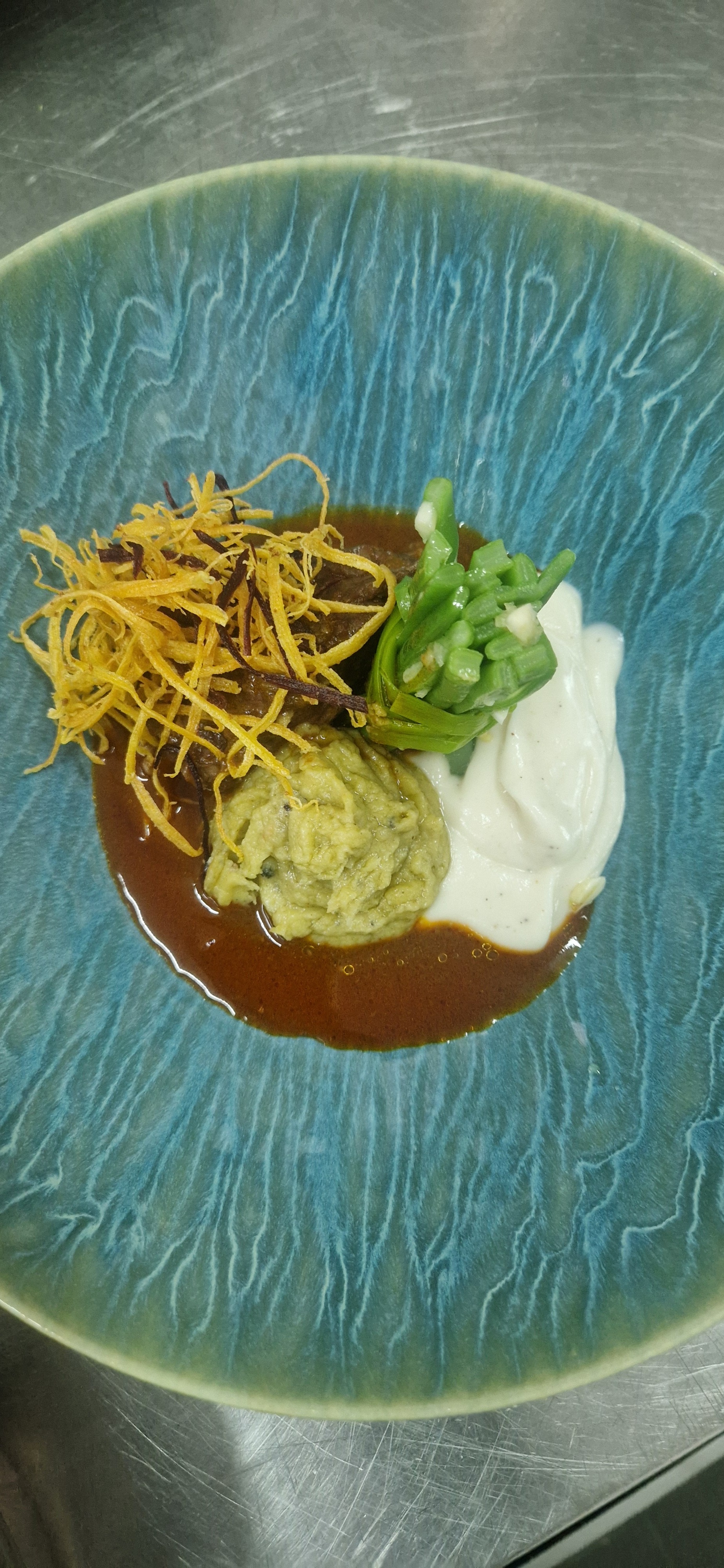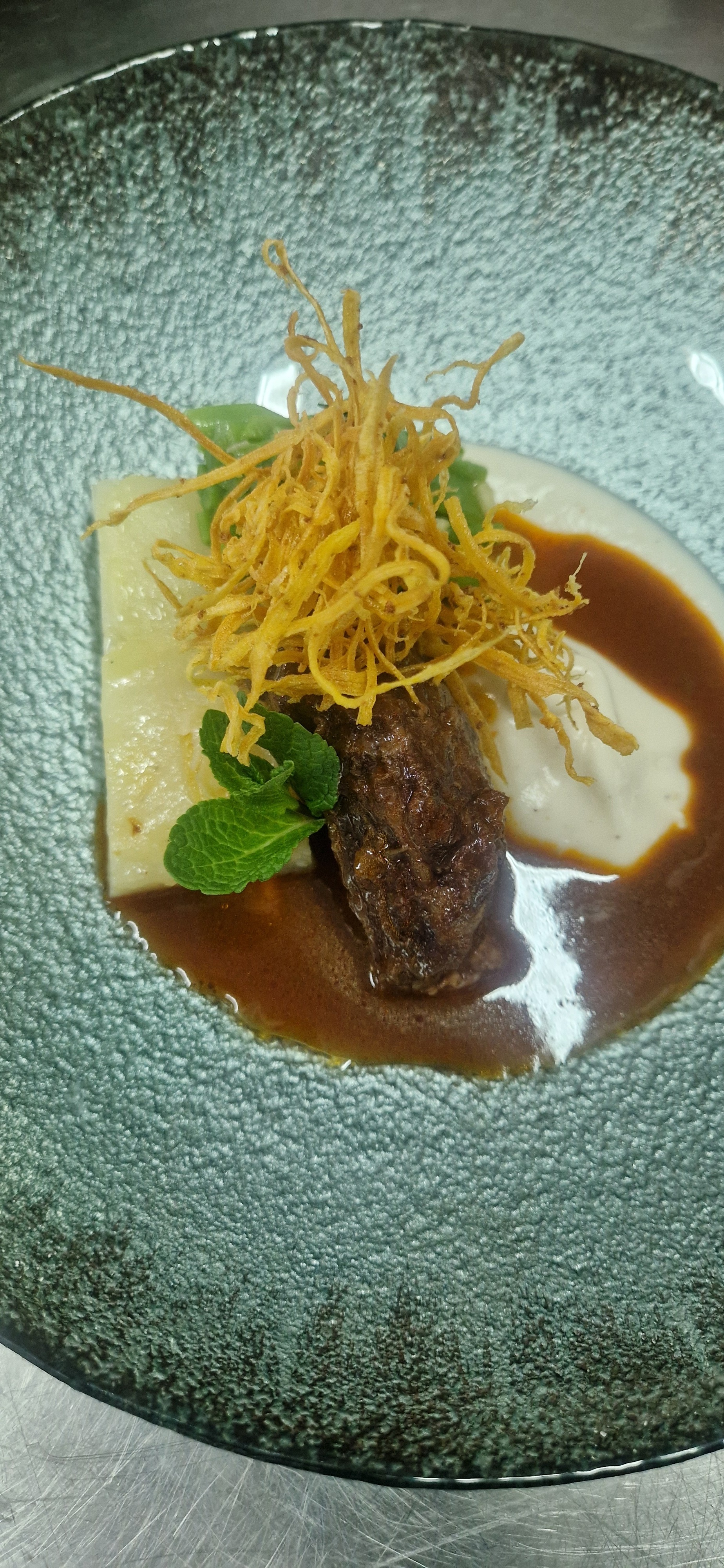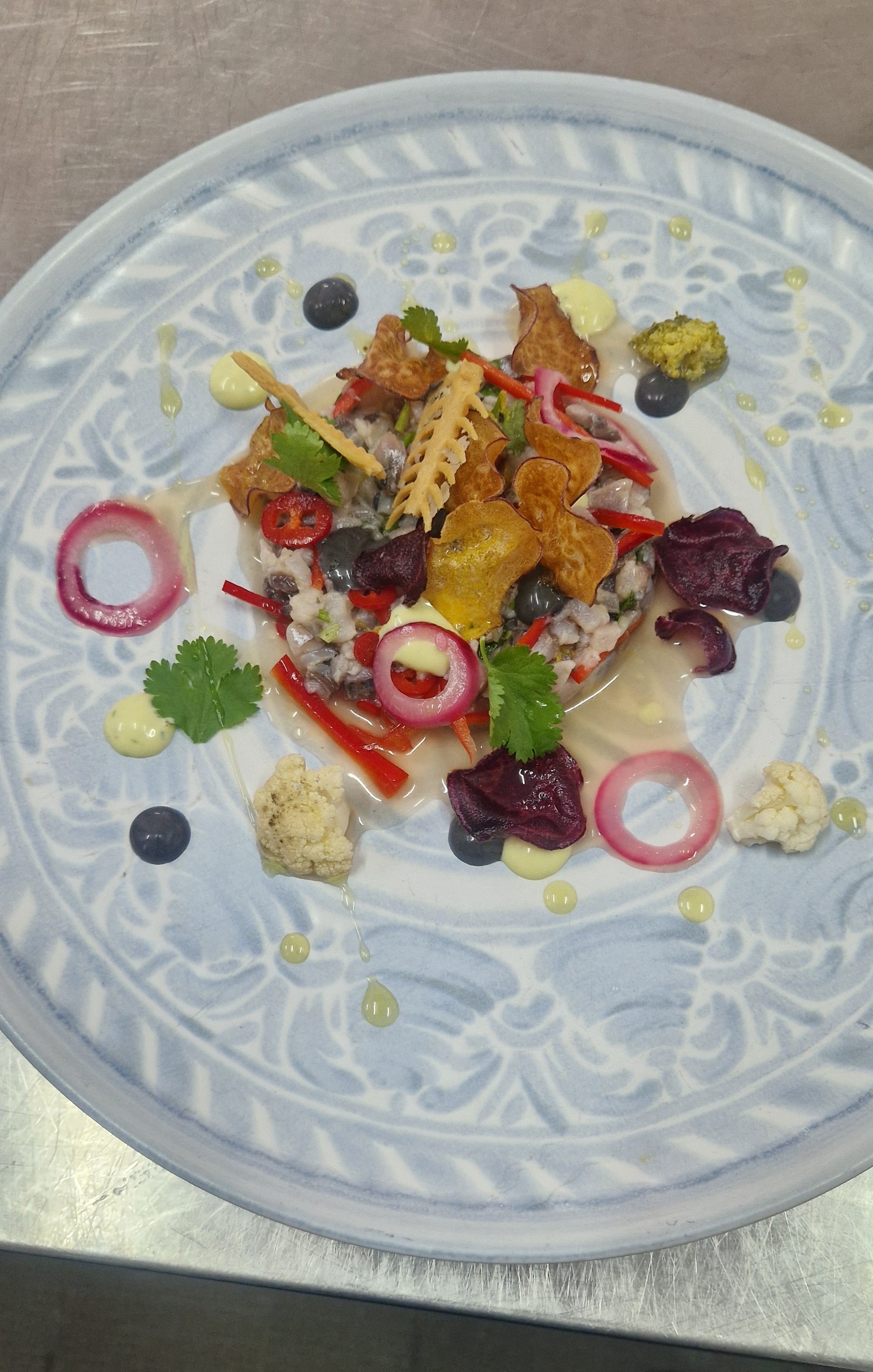 A ementa foi criada tendo como inspiração a dieta mediterrânea, utilizando produtos tradicionais e regionais diminuindo o sal e promovendo a utilização de ervas aromáticas, tendo como princípio condimentar os alimentos, destacando os produtos sazonais com a intenção de reduzir a pegada ecológica. Esta ementa foi criada com o propósito de utilizar os produtos por inteiro evitando o seu desperdício do “prado ao prato”, de forma a utilizar alimentos mais económicos, e menos vendáveis (por estética) para incentivar a alimentação saudável para todos. Para evitar o desperdício optamos por utilizar na entrada o carapau que é um produto da terra, sendo a Nazaré uma vila pescatória e todos os seus aromáticos vêm da zona do Valado dos Frades, uma zona agrícola. No prato principal, optamos por utilizar o porco devido á sua grande produção no distrito de Leiria e as bochechas produto menos vendável com apreciáveis características gastronómicas, o puré de couve flor que está no auge da sua produção, bem como o feijão verde, a utilização da batata produto local de grande utilidade. Na sobremesa escolhemos produtos locais tais como a pêra, laranja, maçã e os frutos vermelhos. Isto tudo com a intenção de diminuir a pegada ecológica.
